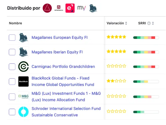 Cuando entres en cualquiera de nuestros escaparates, en cualquier listado, podrás personalizar tu comparativa e incluir el SRRI entre los diferentes parámetros a tener en cuenta.