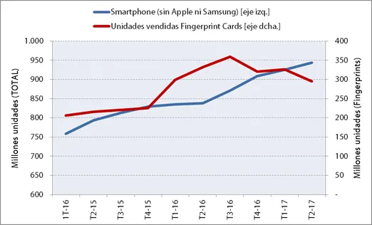 Ahora la pregunta a responder es cuántos serán los dispositivos que venderá la empresa. La respuesta es sencilla: nadie lo sabe. Aunque después de hablar con la empresa nos confirmó varias cosas. La primera es que prácticamente todos su clientes ya tienen dos proveedores de detectores de huellas dactilares y que no quieren más. Esto provoca menores ventas y mayor presión en precios. La segunda es que tan sólo el 78% de smartphones tiene detector de huella. La tercera que de los 5.000 millones de teléfonos móviles que hay en el mundo, tan solo 1.500 son smartphones. Y la cuarta, que el reconocimiento facial (lanzado por Apple en septiembre) es entre 5 y 7 veces más caro.