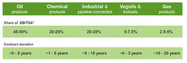 Pero, igual que ocurre con el juego del Monopoly, el tamaño de Vopak y las características de sus terminales hace que los clientes tarde o temprano necesiten usarlas. Esa necesidad obliga a realizar acuerdos directos con la empresa para asegurarse el almacenaje. Es por ello que la gran mayoría de contratos son a más de 1 año (32% a 1-3 años y el 45% a más de 3, el resto a menos de 1).