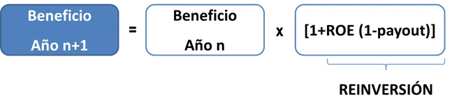 Donde 1+ROE es la tasa de crecimiento del beneficio, siendo ROE la tasa de reinversión.