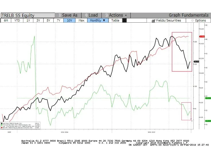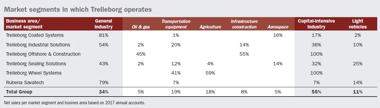 Según el mercado, Trelleborg es una empresa cíclica ya que sus clientes lo son. Si uno mira los segmentos en los que divide la empresa: